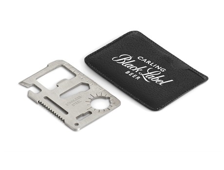 A multipurpose pocket sized slim survival multi-tool that is great for any outing. Comes in a slim leatherette black pouch. Features 11 functions: a can opener, knife edge, screwdriver, ruler, bottle opener, 4 position wrench, butterfly wrench, saw blade, direction ancillary indication, 2 position wrench, and a lanyard hole • stainless steel: 6.8 ( l ) x 4.5 ( w ) x 0.25 ( h )• Simulated leather pouch 8 ( l ) x 5.7 ( w ).